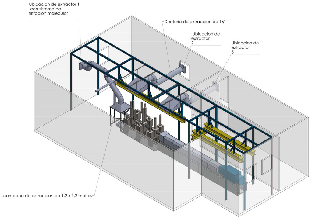 Asimismo, si se requiere, la completa reestructuración de la ductería o implementación de la misma, para eficientizar las áreas a las que se suministra o extrae aire, dependiendo del proceso.